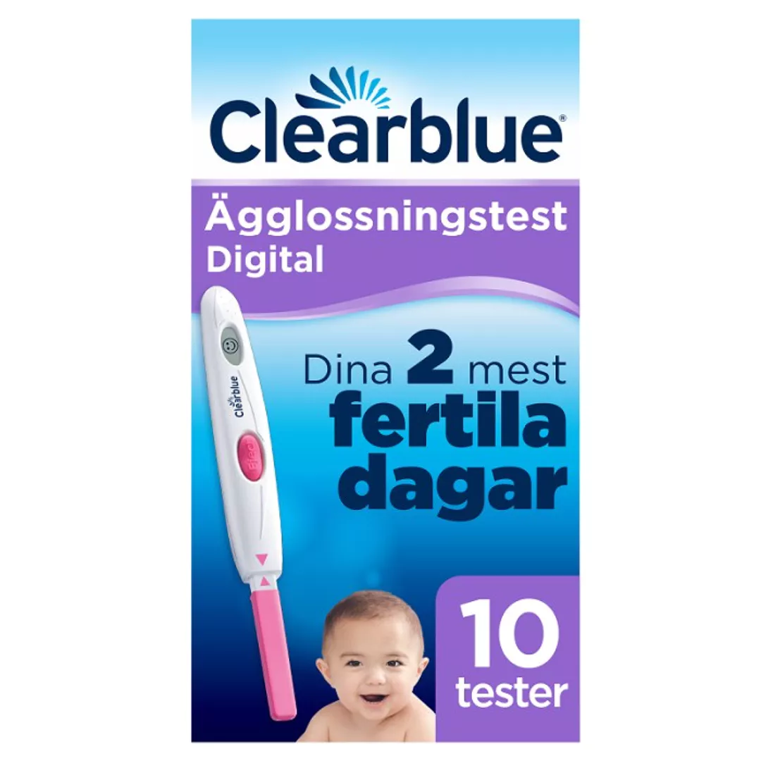 Clearblue Digital Ägglossningstest ligger i förpackning med 10 teststickor för engångsbruk, samt 1 återanvändbar avläsningsenhet som håller och tolkar resultatet av teststickan. Den digitala avläsningsenheten fungerar endast med den typ av teststickor som medföljer. Skulle du få oanvända teststickor över, så kan du spara dem och använda dem i nästa cykel om du inte blivit gravid. Behöver du fler teststickor, så köper du en ny förpackning och använder teststickor från den. Den digitala avläsningsenheten bör aldrig bytas ut i en pågående testperiod.
