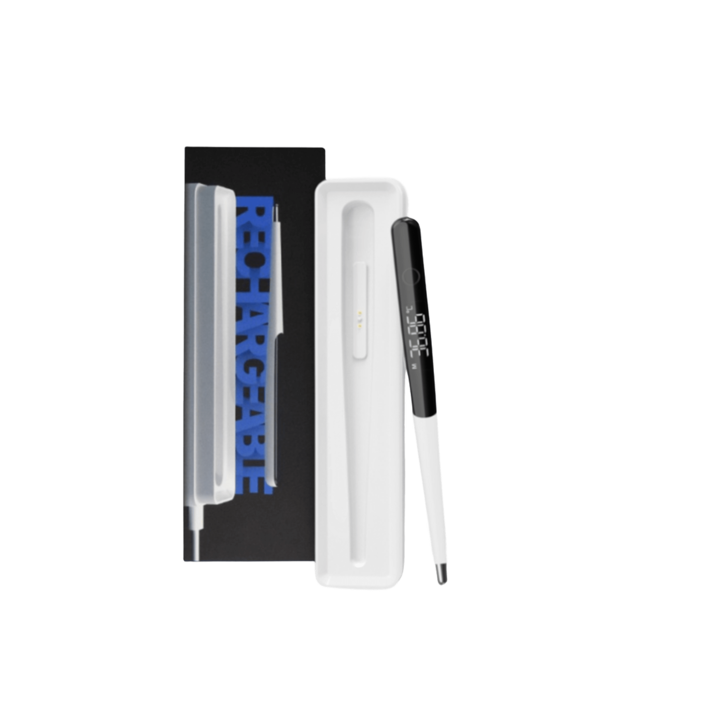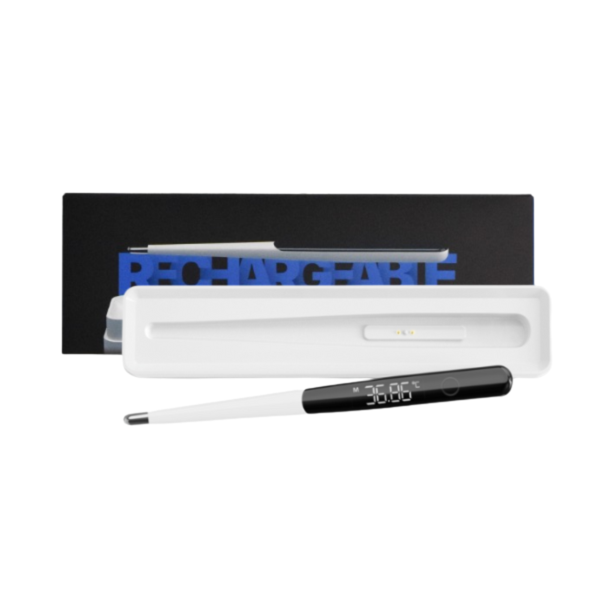Utvecklad som ett modernt, mer exklusivt alternativ till vanliga termometrar, har den ett uppladdningsbart litiumbatteri, praktisk USB-C-laddning och IP54-vattenresistens för enkel rengöring. Med både °C och °F, automatisk avstängning och påminnelse vid låg batterinivå är denna termometer skapad för långvarig och daglig användning för hela familjen.