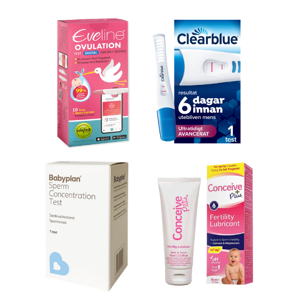 Allt ni behöver för att komma igång — samlat i ett enda paket. Det här startpaketet täcker hela resan: digital spårning av ägglossning, spermatest för mannen, en fertilitetsoptimerad glidegel och en tidig graviditetstest. En genomtänkt kombination för par som vill ta kontroll från dag ett.